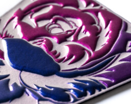 We do different types of single and mixed techniques on shoe tongue. We work all types of materials, on which the different processes are studied and adapted for an optimal final result that respects the customer’s needs. The techniques used can be embroidery (satin stitch, 3d stitch, punch stitch, carpet stitch, chain stitch, cross stitch, cornely stitch, sequins, beads, just to name a few),